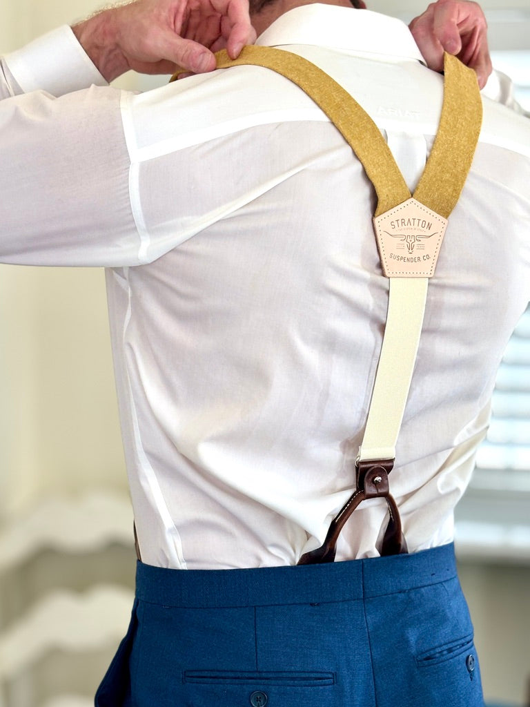 Marigold Yellow is more than just a trending wedding color—it’s a statement of refined craftsmanship and heritage-inspired menswear. Stratton Suspender Co.’s Marigold Yellow Linen Button-On Suspenders are handcrafted with heirloom-quality materials, designed for grooms, groomsmen, and men who appreciate classic tailoring with a modern sensibility.